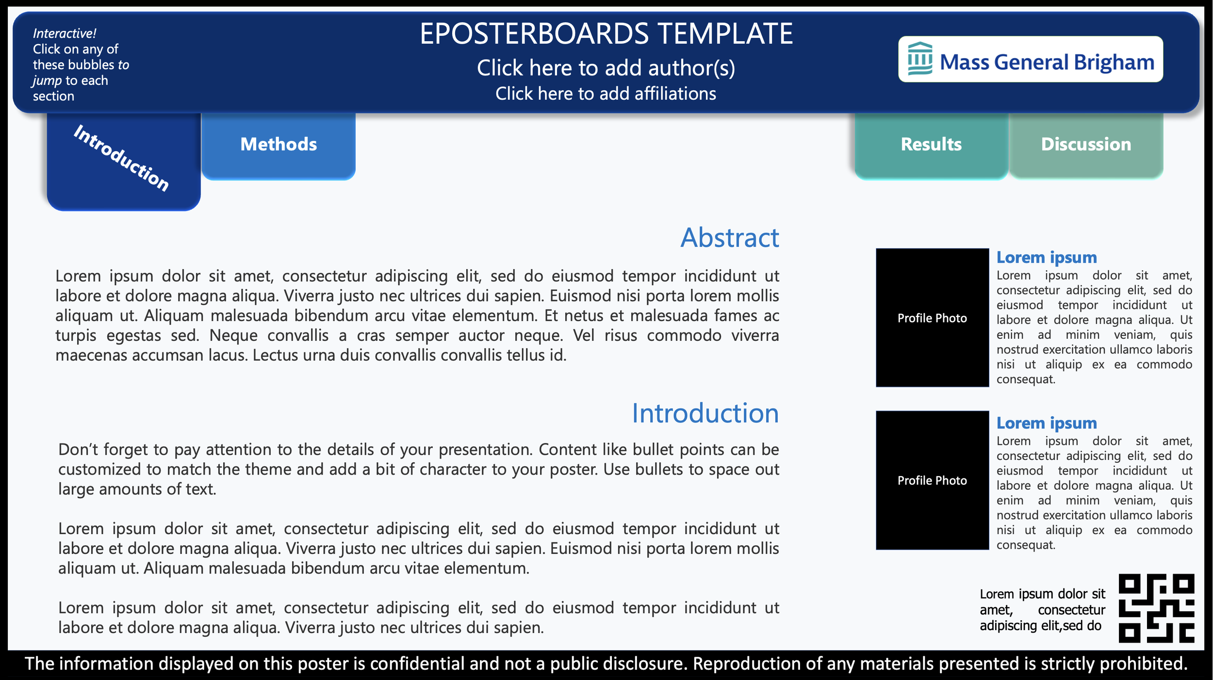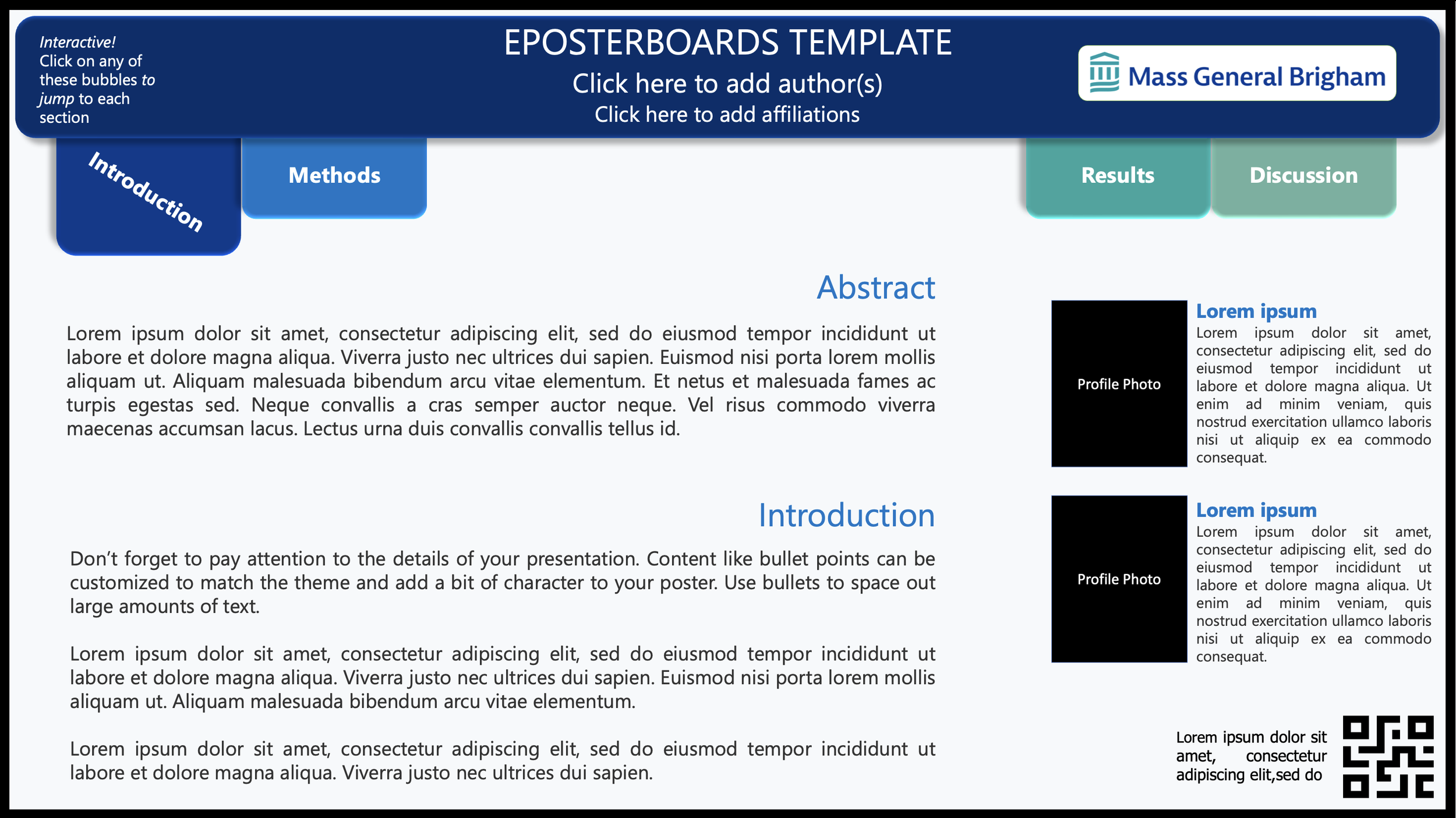 We encourage using one of the templates provided to ensure the best fit and visibility on our ePoster screens. While using a template is optional, you must follow the guidelines listed in order to display properly on screen.